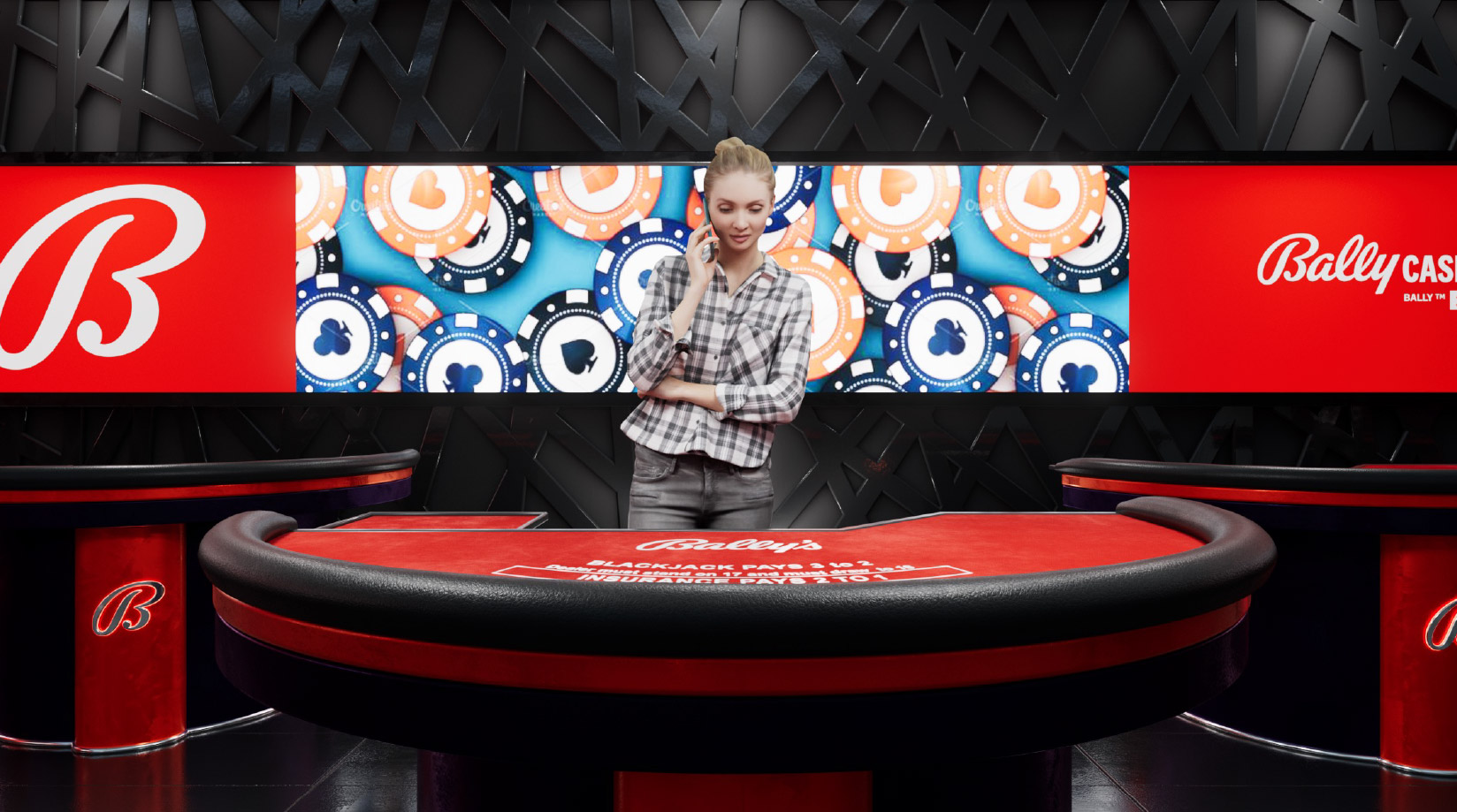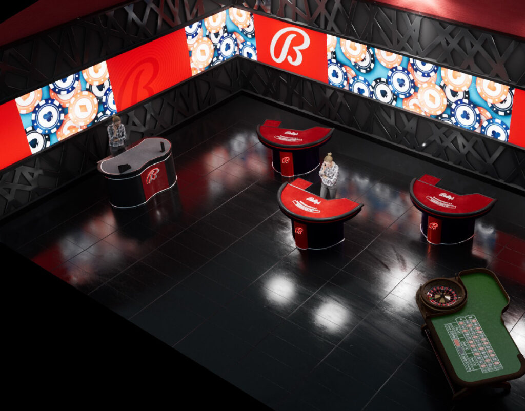 Bally's Live Casino Studio is one of the first of its kind in North America. The space brings table games, roulette, and a massive live video wall together to create a next-level online casino experience. Our team had a hand in it all—from early sketches and 3D renders to bringing the studio to life on the ground.
